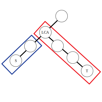 int ancestor = lca(s, t);