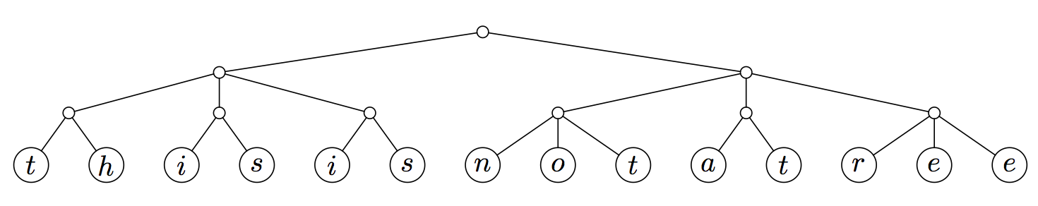 。第二级为深度 。第三级为深度 ,依此类推。 - 离根越近,节点指向的原始树(在它是手指树之前的树)的子树越深。这样,沿着树向下工作就是从叶子到树的根,这与典型的树数据结构相反。为了获得这种的结构,我们必须确保原始树具有统一的深度。在声明节点对象时,必须通过子节点的类型进行参数化。深度为