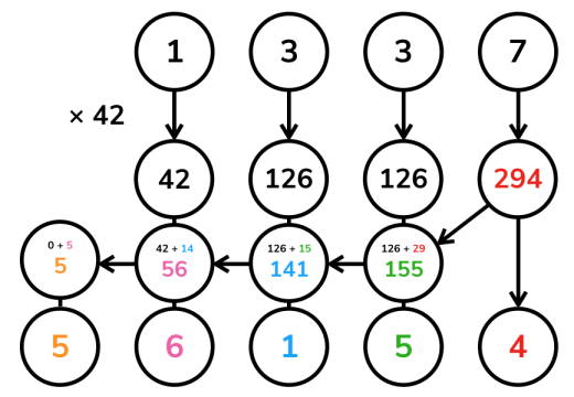 也就是从最低位开始,将两个加数对应位置上的数码相加,并判断是否达到或超过 。如果达到,那么处理进位:将更高一位的结果上增加 ,当前位的结果减少 。