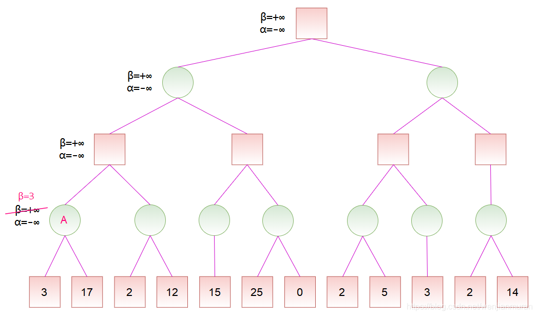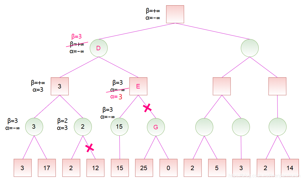 若已知某节点的部分子节点的分数,虽然不能算出该节点的分数,但可以算出该节点的分数的取值范围。同时,利用该节点的分数的取值范围,在搜素其子节点时,如果已经确定没有更好的走法,就不必再搜索剩余的子节点了。
