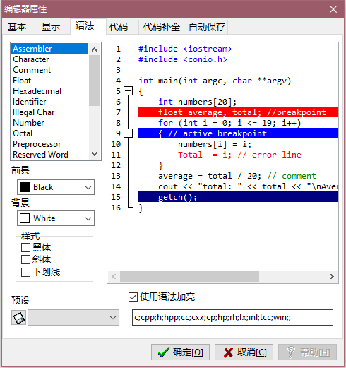 点击工具 -> 编辑器选项,然后选择 "语法" 选项卡,可以使用预设主题,也可以自行调整。